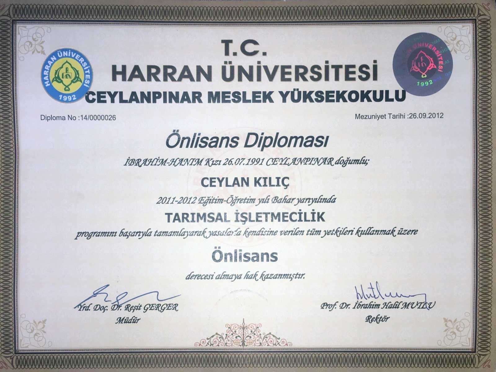 2010-2012 Harran Üniversitesi CYMO Tarımsal İşletmecilik